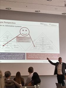 Prof. Dr. Sven Laumer präsentierte Ergebnisse einer Studie, die zusammen mit Steven Alter aus San Francisco und Christian Maier, Universität Bamberg, entstanden ist. Basierend auf fünf Fallstudie präsentierte er eine neue Perspektive auf Nutzerzufriedenheit und stellte vor allem die Verbindungen von Arbeits- und Informationssystemen in den Mittelpunkt der Diskussion.