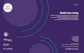 Der Themenschwerpunkt „Mobile Recruiting“ analysiert die Ergebnisse der Studien „Recruiting Trends 2020“ und „Bewerbungspraxis 2020“ mit Fokus auf die Nutzung mobiler Endgeräte, wie Smartphones und Tablets, zur Rekrutierung und Bewerbung. Kandidaten können sich auf unterschiedliche Art (z.B. Apps, für mobile Endgeräte optimierte Darstellung von Websites und Formularen) über mobile Endgeräte bei Unternehmen bewerben. Das entsprechende Angebot einer professionellen mobilen Präsenz und entsprechenden Funktionalitäten ist seitens der Unternehmen hierfür notwendig.