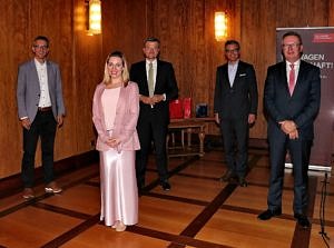 „Jung und mutig heißt, Dinge immer neu und anders zu denken“ so der Inhaber des Schöller-Stiftungslehrstuhls für Wirtschaftsinformatik, „umso sowohl Kunden als auch Mitarbeitende im Blick zu haben, Vertrauen zu schaffen, und vor allem einfache und nützliche Produkte und Dienstleistungen anzubieten“. Der Empfang wurde als